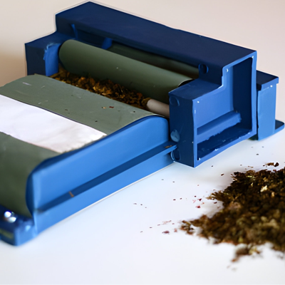 Description : Étui fin en métal ou en bois, en forme de feuille, contenant des feuilles à rouler.